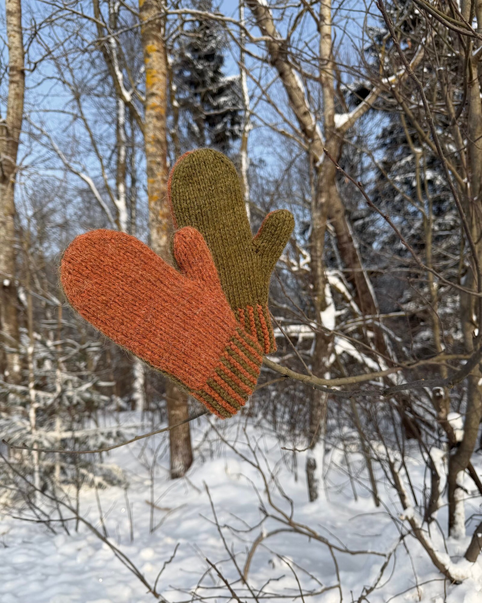 Demi Mittens are a fun, quick project and a great way to use up those random balls of aran-weight yarn in your stash, and, of course, an opportunity to play with colour combinations!
